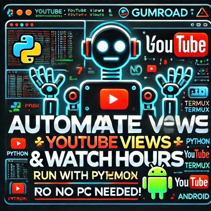 Unlock organic-style growth on YouTube and beyond! This automated tool uses Python and Termux to simulate real human views on your video — increasing both views and watch time.